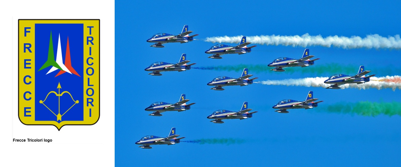 The name means “Tricolor Arrows.” They are the largest aerobatic team in the world, flying 10 aircraft (9 in formation and 1 solo).