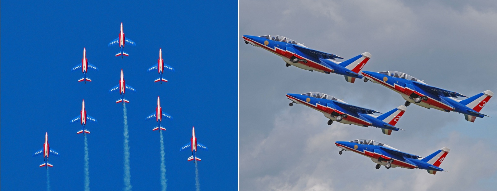 Su nombre significa “Patrulla Francesa”. Son famosos por dibujar la bandera francesa en el cielo con humo azul, blanco y rojo.